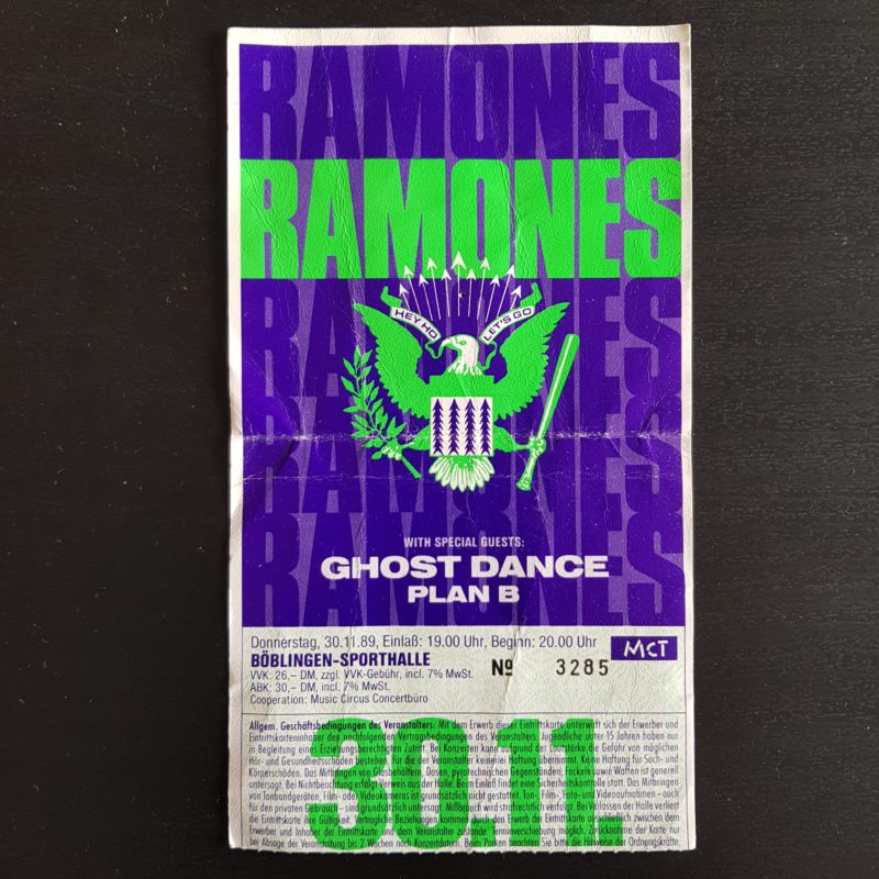 Ramones TICKET Böblingen Sporthalle 30.11.1989 M#1