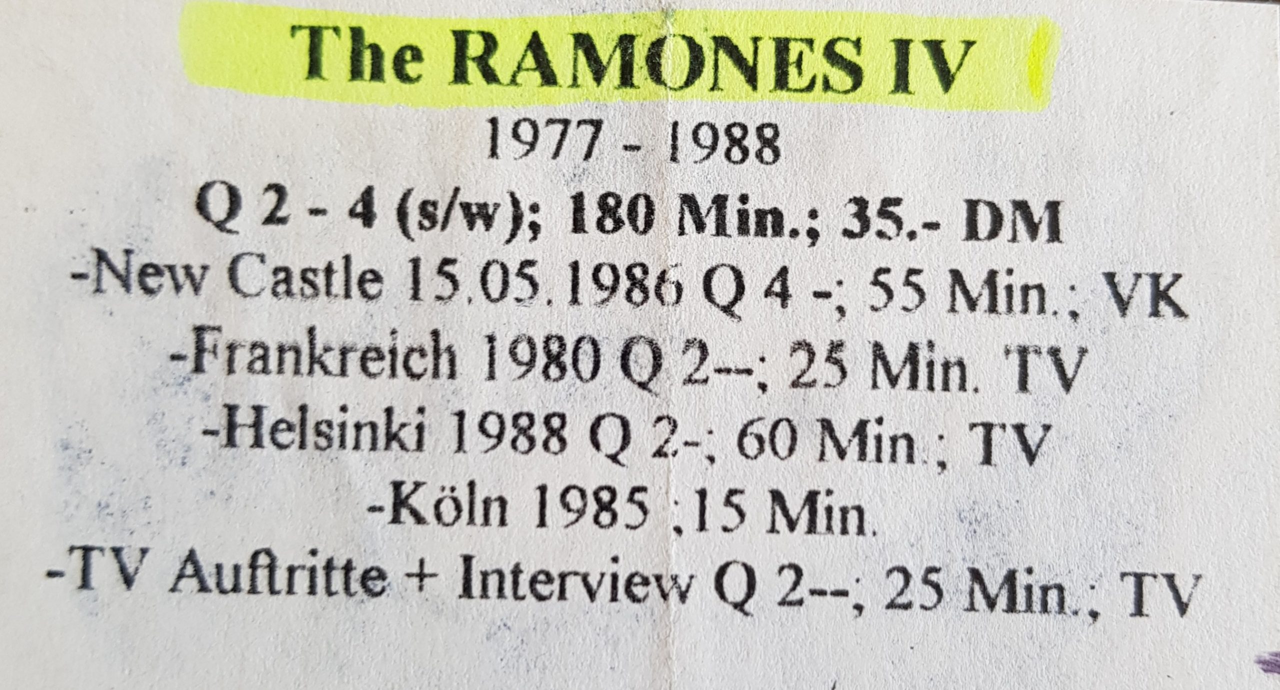 Ramones VHS LIVE CLUB CITTA