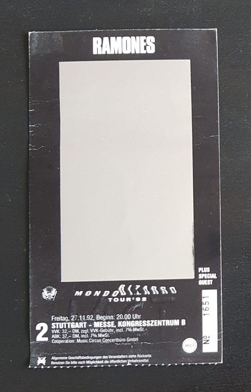 Ramones TICKET Stuttgart Messe 27.11.1992 Mondo Bizarro M#6 Beitragsdatum 8. Juli 2020 Veröffentlicht in Memorabilia Schlagwörter live, Ticket Kommentare 0